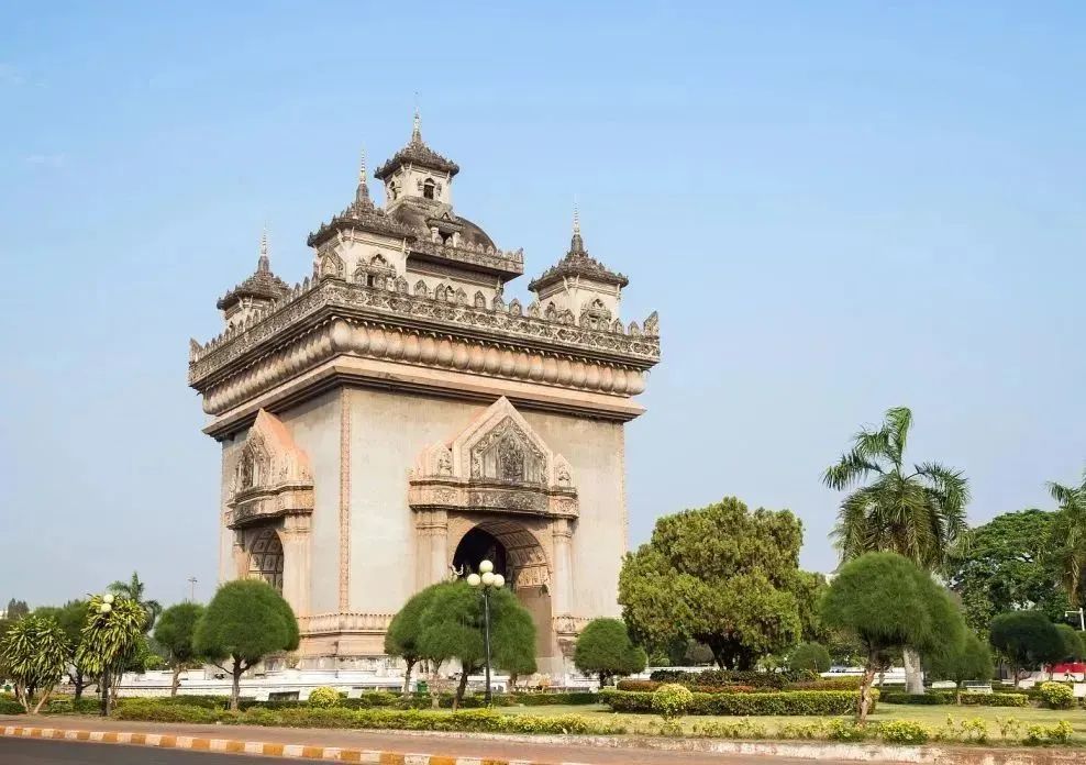 凯旋门是万象的地标性建筑,位于万象市中心,是一座大型纪念碑。其设计灵感来源于巴黎的凯旋门,但却带有典型的老挝风格,四面是拱形门与雕饰,拱门基座上有精美的雕刻和壁画,展示了老挝传统文化艺术。登上凯旋门的顶部,可以鸟瞰万象的城市风貌。