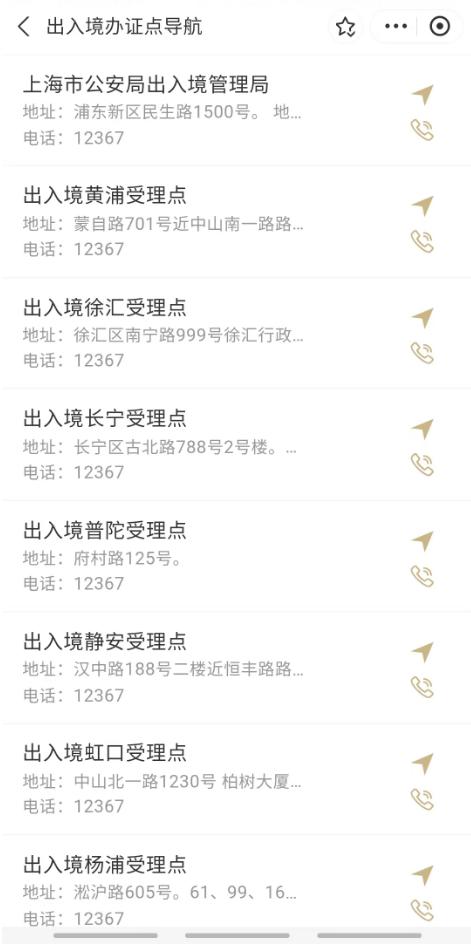 5、办证点查询:提交成功后,按时前往对应受理点办理业务即可。如果找不到办理点,选择“出入境专栏”中的“出入境办证点导航”服务,就能直接查询对应的办理点地址,一键导航!