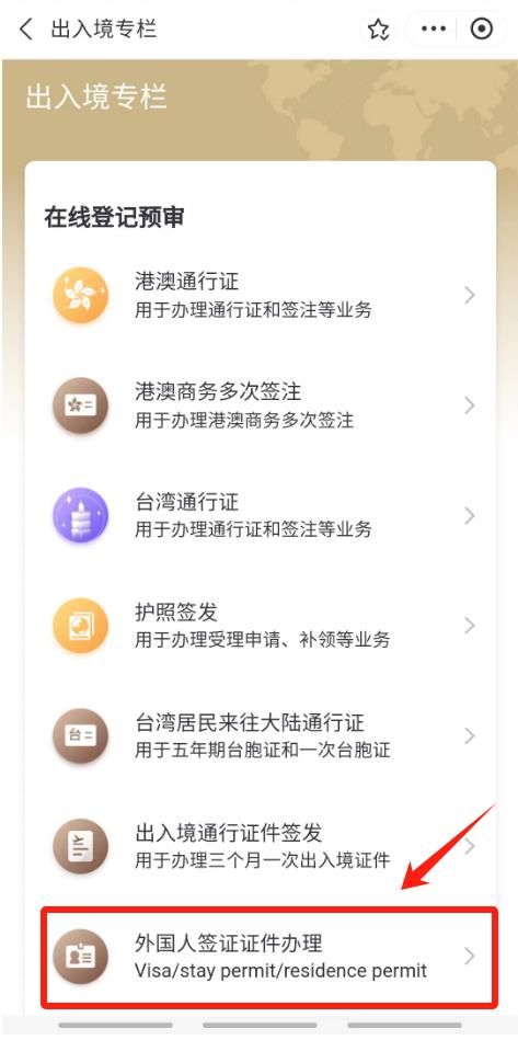 “出入境专栏”即可在线预约