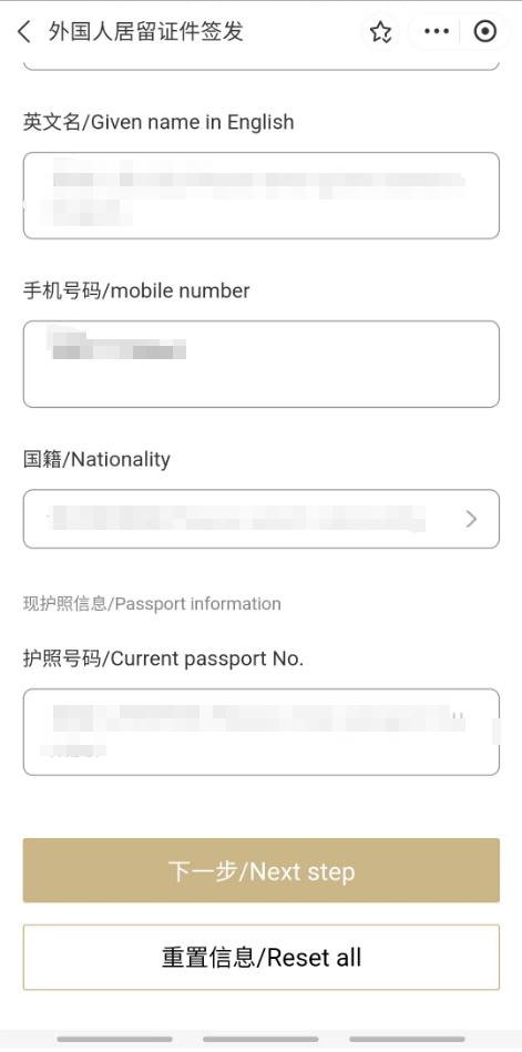 2、以“外国人居留证件签发”服务为例,根据个人实际情况选择对应事由,并如实填写信息,确认无误后,点击“下一步”预约受理点、日期和时间段,点击“确定”。