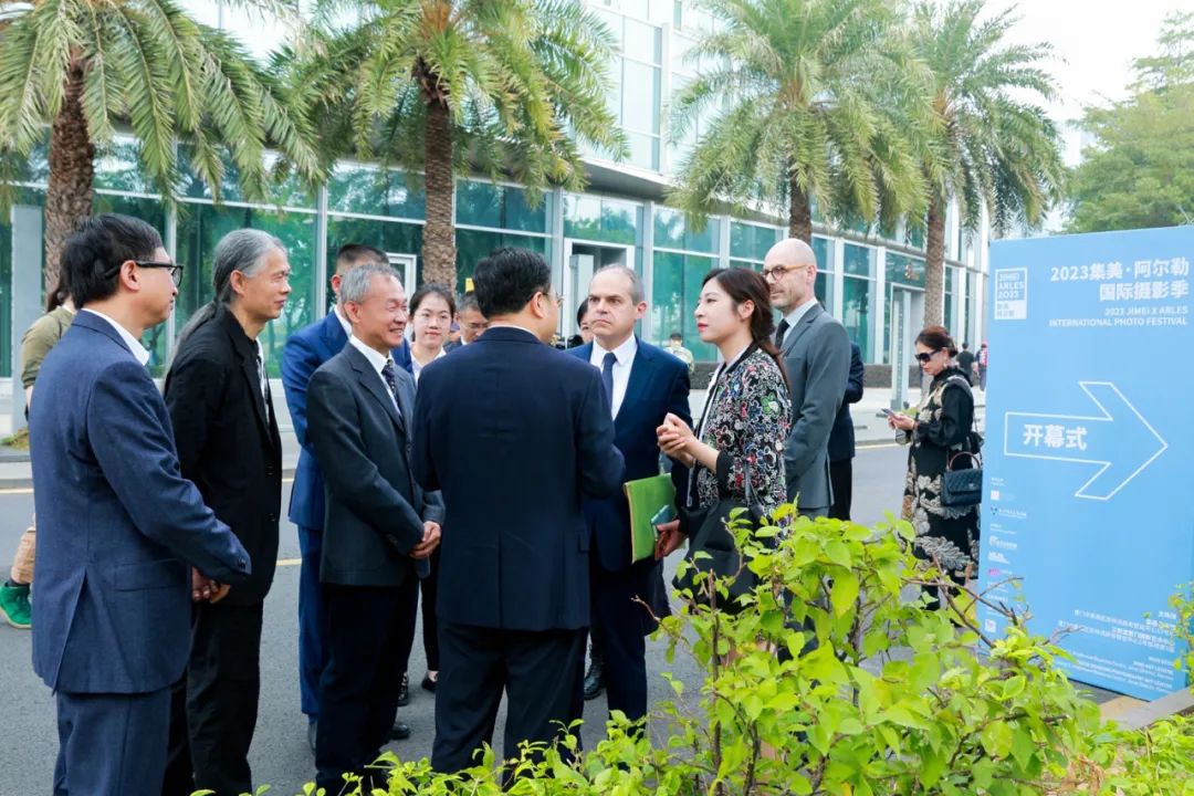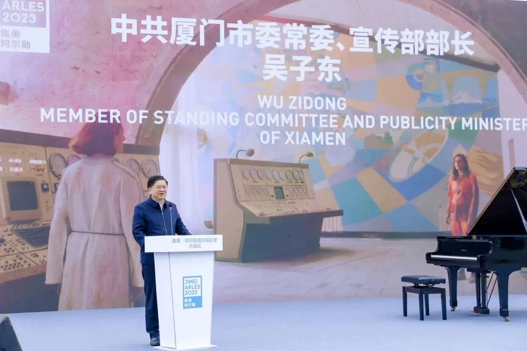 12月15日,中共厦门市委常委、宣传部部长吴子东莅临现场宣布2023集美·阿尔勒开幕。集美区委书记胡旭彬,厦门市人民政府外事办公室副主任姚建洪,厦门市文化和旅游局副局长魏峰,厦门市文学艺术界联合会副主席王元,集美区委常委、宣传部部长庄志辉,法国驻广州总领事福希玮(Sylvain Fourriere),希腊驻广州总领事马提诺斯·曼达里蒂斯(Martinos Mandalidis) ,法国驻广州文化领事白川鸿(Christophe Bagonneau),新加坡国际摄影节联合创始人、集美·阿尔勒艺术委员会成员李锦丽(Gwen Lee),英国维多利亚和艾尔伯特博物馆(V&A)国际项目策展人、集美·阿尔勒影像策展人奖评委丽莎·斯普林格(Lisa Springer),法国阿尔勒摄影节展览制作人安娜埃勒·韦拉德(Annaëlle Veyrard),法国阿尔勒摄影节空间设计师阿曼达·安图内斯(Amanda Antunes),中国艺术摄影协会副主席、成都当代影像馆创办人、收藏家钟维兴,艺术家、导演、法国艺术与文学勋位军官勋章获得者陈传兴,美术史学家、美国国家文理学院终身院士,芝加哥大学东亚艺术中心主任巫鸿,律师、收藏家、写作者刘钢,著名导演贾樟柯,演员、青年艺术家黄湘丽,中国艺术品市场资深专家、中国国家画院研究员、收藏家、当代艺术策展人蒋再鸣,中国摄影家协会副主席杨越峦,清华大学美术学院教授博士生导师冯建国等嘉宾出席开幕周活动。