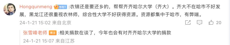 此外,张雪峰在该条社交动态评论区透露,今年也将会对齐齐哈尔大学进行捐款。原标题:《张雪峰宣布:每年50万,共捐300万》