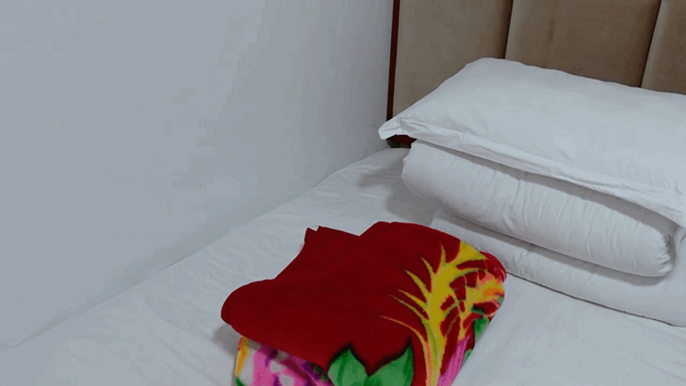 屋里漂浮着潮湿的味道上手抚摸粉色床单