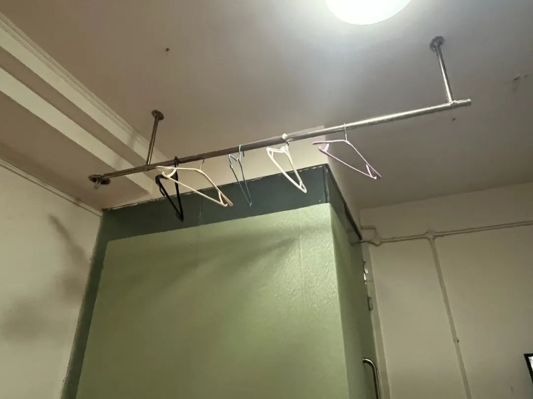 眼前除了基础设施外柜子上还有用袜子做的艺术装置
