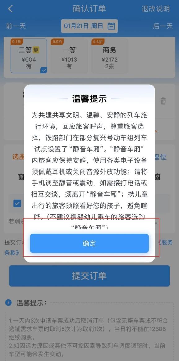 认真阅读温馨提示内容后点击【确认】后并提交订单