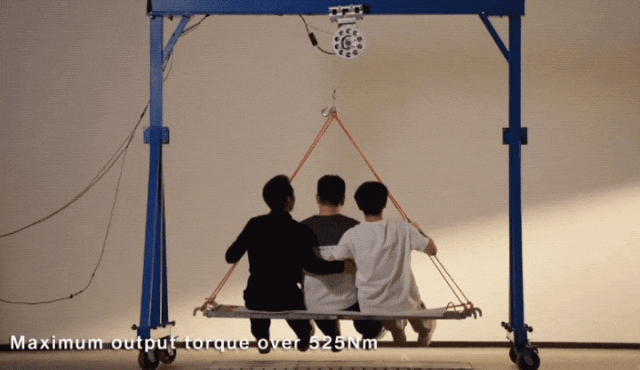 一个为D190,其额定输出转矩为150Nm(牛米),但最大可达525Nm,直接可以拉动3位成年男性。