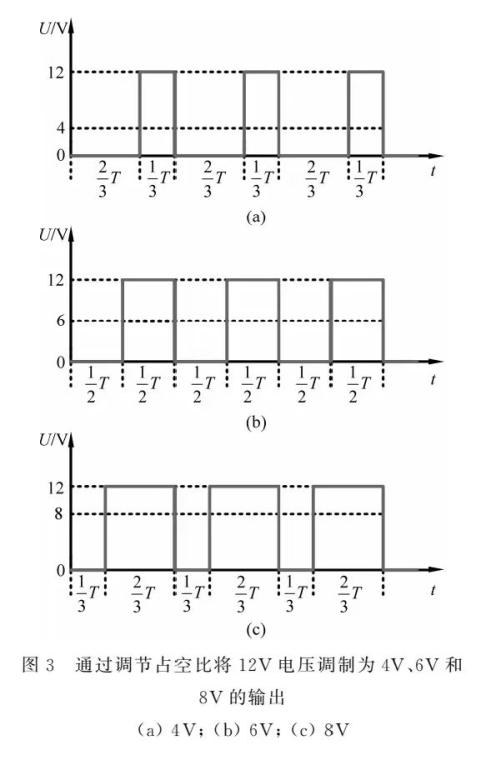。如图 3 所示,将幅值为 12V 的直流电压信号,分别调节占空比为