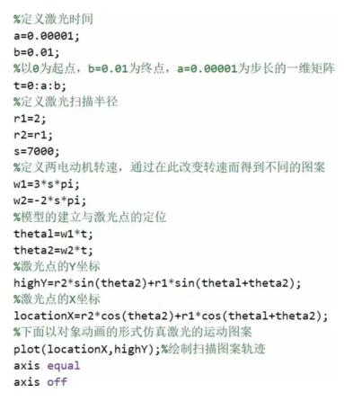 利用 MATLAB 软件对激光图案的形成过程进行仿真实验,代码程序如下。
