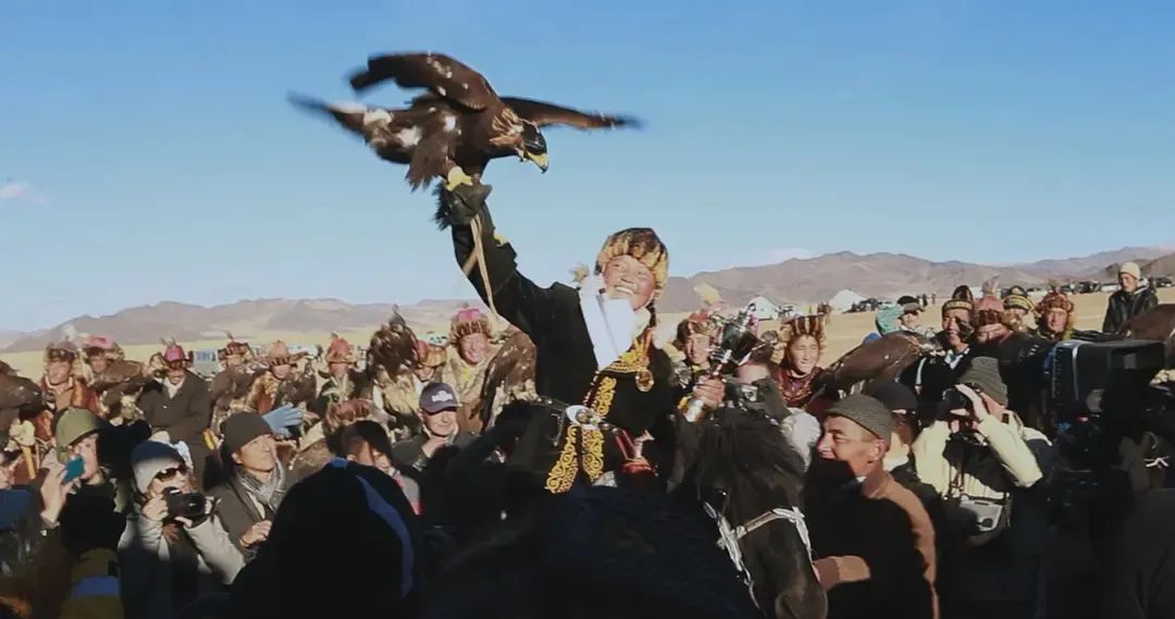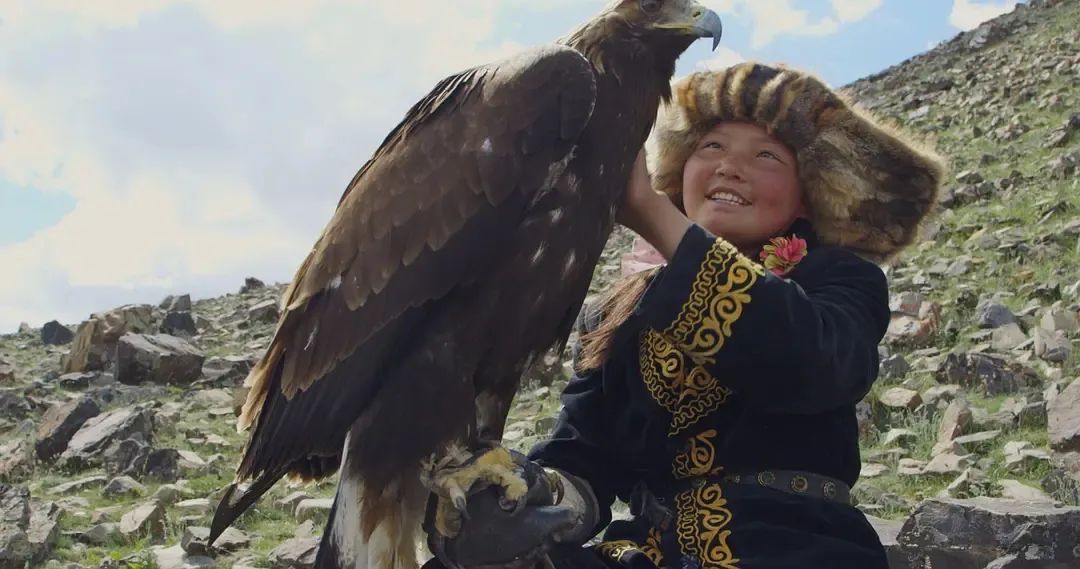 2014年曾有一张照片疯传全球网络——年仅13岁的哈萨克族少女Aisholpan头戴厚皮帽,身穿哈萨克族传统服饰,她站在雪山之巅,将一只雄鹰抛向天空……这张照片后来也成为了纪录片《女猎鹰人》拍摄的最初动机。