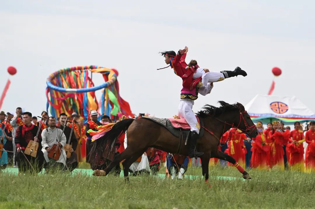 △那达慕大会赛马,选手展示马上技巧。(图/视觉中国)相关数据显示,2023年蒙古国接待外国游客数量超过65万人次,旅游业创收12亿美元。俄罗斯、中国和韩国是蒙古最大的游客来源国。据蒙古旅游部2019年的一项调查,前往该国的游客中有49%年龄在40岁以下。