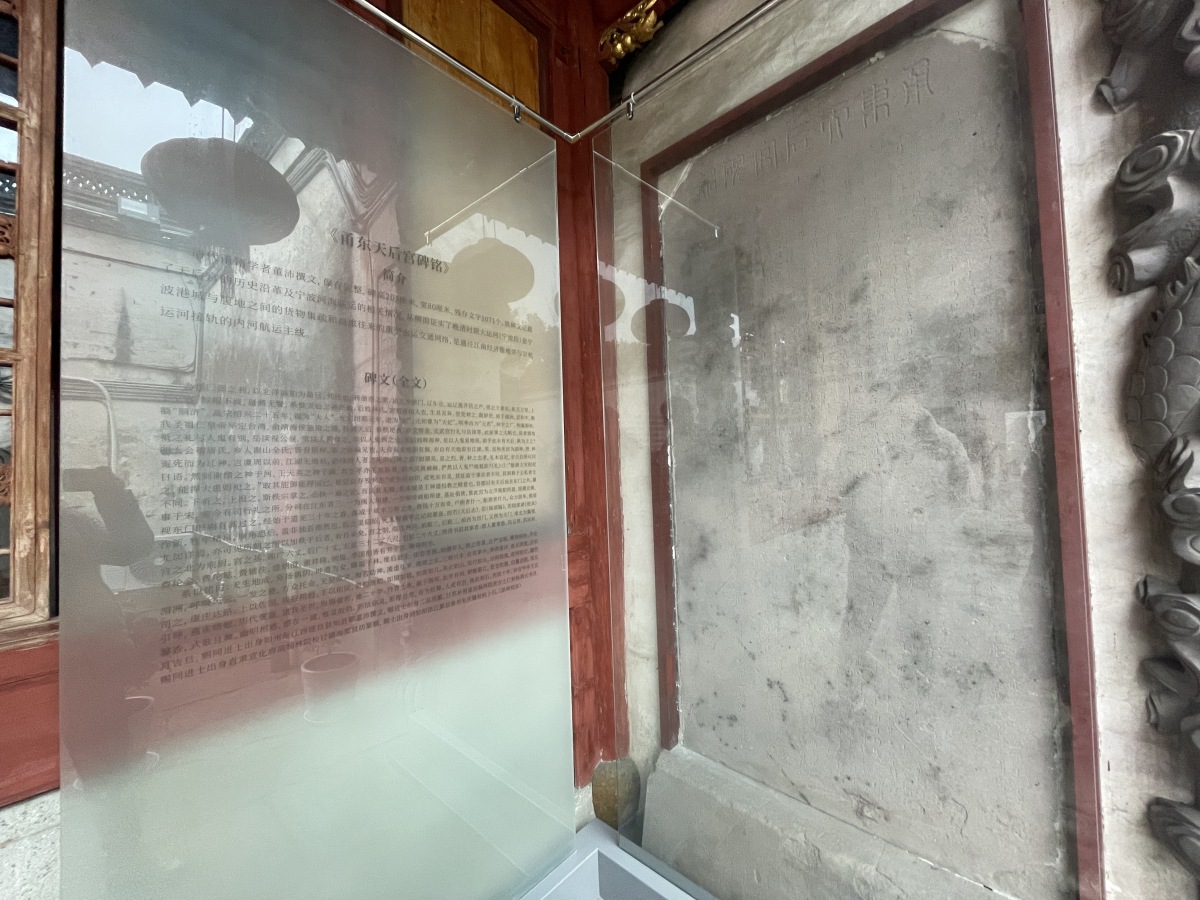 原先放在地上的多块牌匾,以及从江厦街天妃宫遗址出土的清代“重建赐敕宁波府灵慈宫记碑”残碑原碑得到常态化展示,视线上更有利于观众的观看与阅读。