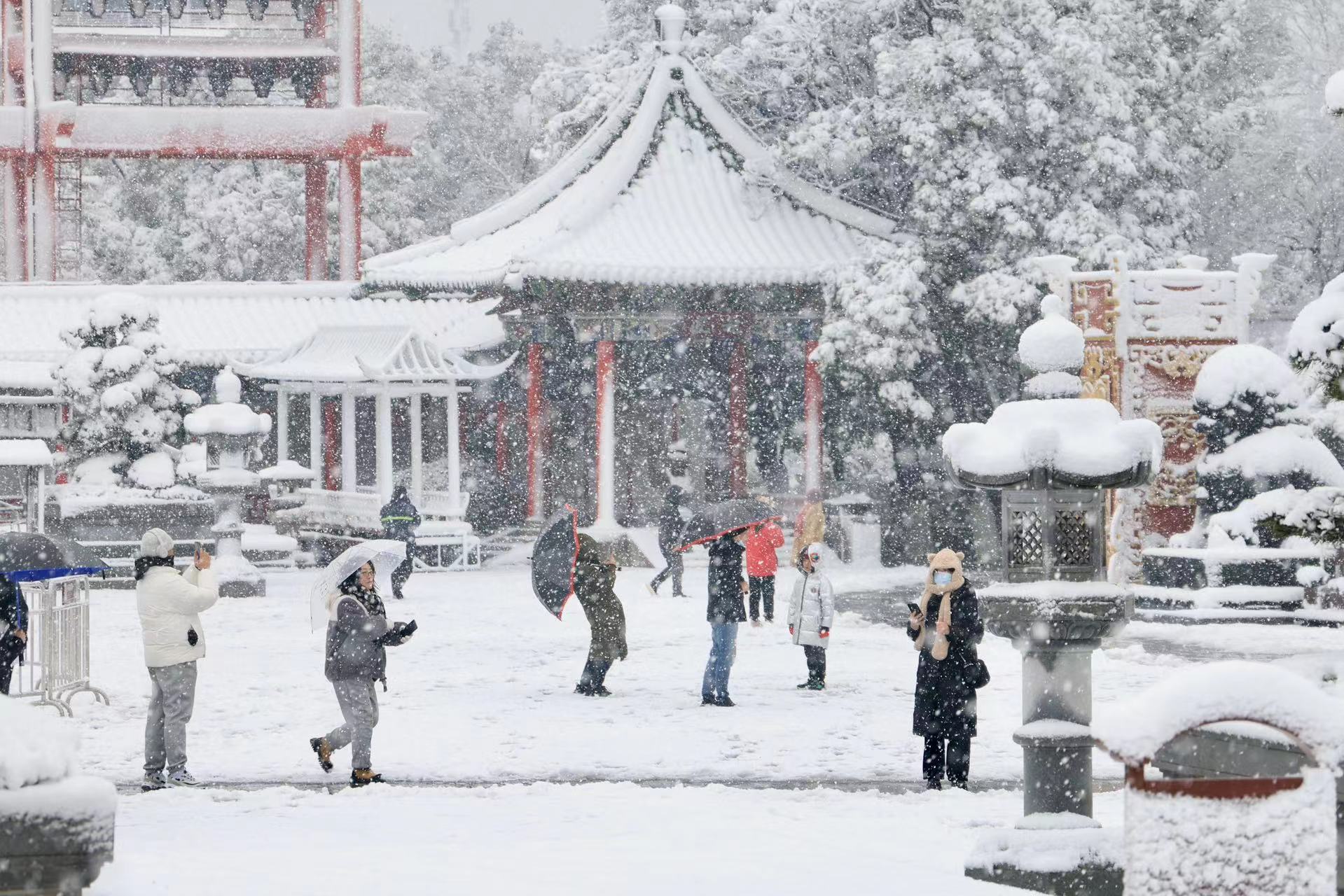 1月22日的滕王阁,吸引了不少游客前来观赏雪中美景。图/洪观新闻记者 马悦 摄