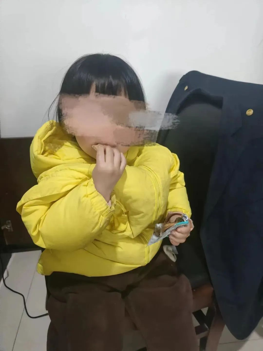 小女孩乖乖等着奶奶来接她约一个小时后