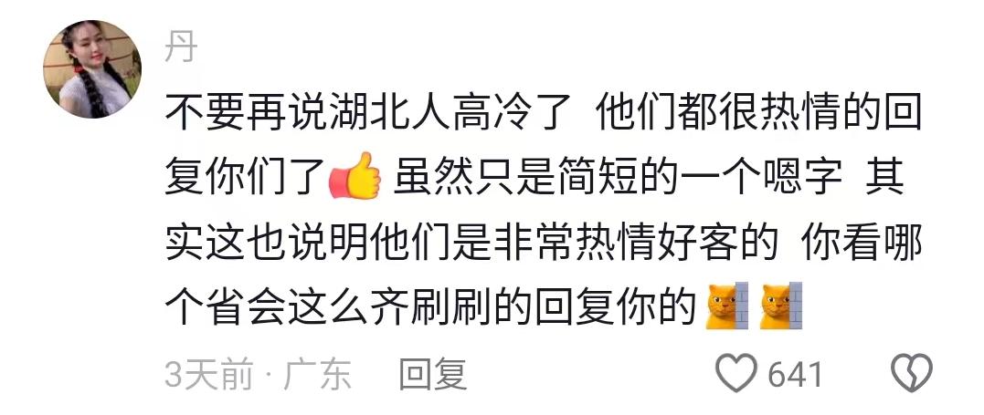 “湖北人好高冷,一点回应也没有”