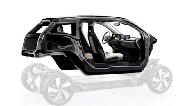 ▲车体上部的生命模块公司通过与SGL汽车用碳纤维材料公司合作,历经10多年研发,开始生产自己所需的碳纤维。其新型车中生命模块的制造工艺:将碳纤维织成织物后浸润于专用树脂中,制成预浸料;将预浸料热定型成刚性车身零件;采用专门开发的技术,将车身零件全自动地黏合成完整的车身部件。所得CFRP车身具备极高的抗压强度,能承受更快的加速度,整车的敏捷性和路感都非常好。