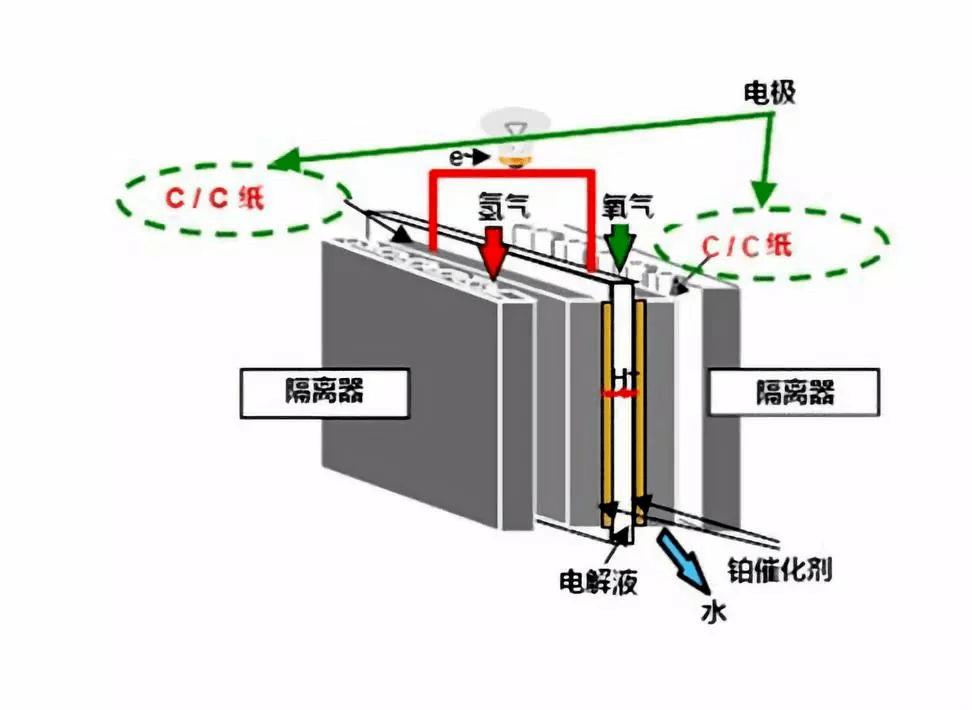 ▲模块化燃料电池的应用示例碳纤维纸作为一种高性能复合材料,是制造燃料电池质子交换膜电极中气体扩散层必不可少的多孔扩散材料。气体扩散层(GDL)构成气体从流动槽扩散到催化剂层的通道,是燃料电池的心脏,是膜电极组(MEA)中非常重要的支撑材料,其主要功能是作为连接膜电极组和石墨板的桥梁。气体扩散层可帮助催化剂层外部生成的副产品——水尽快流走,避免积水造成溢流;还可帮助在膜的表面保持一定水份,确保膜的导电率;燃料电池运行过程中,帮助维持热传导;此外,提供足够的力学强度,在吸水扩展时保持膜电极组的结构稳定性。