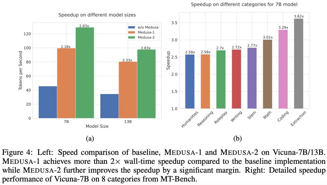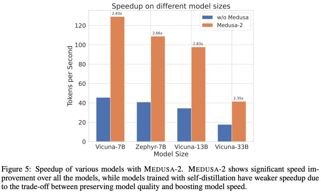 下图 5 为使用 MEDUSA-2 时不同模型的加速情况。