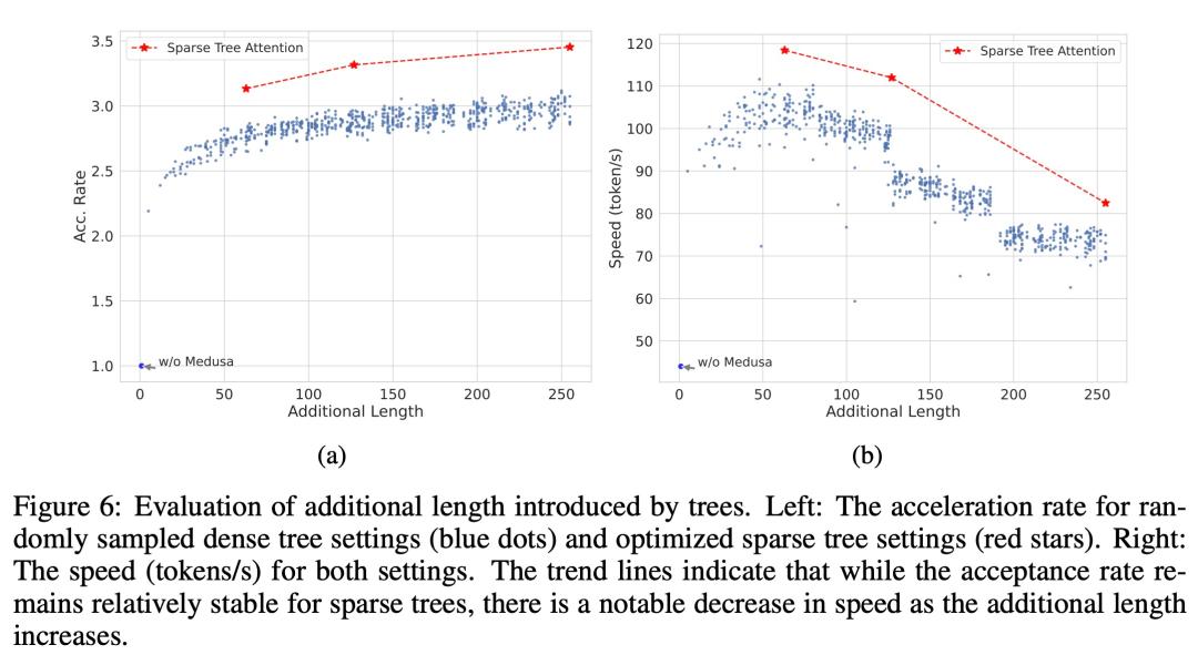 消融实验下图 6a 比较了随机采样密集树设置(蓝点)和优化稀疏树设置(红星)的加速率。6b 比较了密集和稀疏树设置的速度。