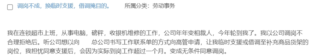 我在连锁超市上班,从事电脑、磅秤、收银机维修的工作,公司年年变相裁人,今年轮到我了。我以公司调岗不合理拒绝后,听说公司想以向总公司书写工作联系单的方式向高管申请,让我临时支援或借调至补充商品货架的岗位,我担忧同意支援后,会因为实际到岗工作超过一个月,变成无条件同意调岗。请问我该如何维权?