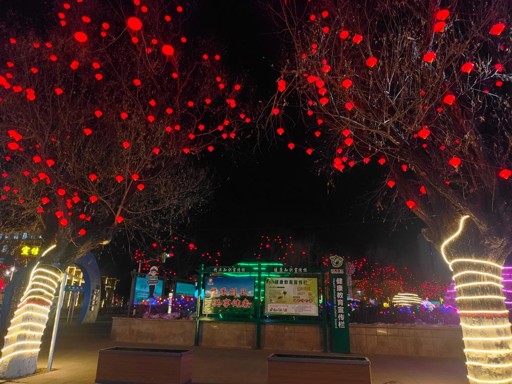 迁西县委门前,在迁西县城多条街道的树上都挂着满树的小红灯笼。李微敖摄一位知情人士告诉澎湃新闻,迁西县的城市亮化工程是打造城市景观、做好旅游文章的一个措施。迁西想要搞好城市环境,进一步做好招商引资,带动文旅产业发展,因此搞了一些城市亮化工程,不过这一举措对马树山这样的退休干部而言,不是很理解。