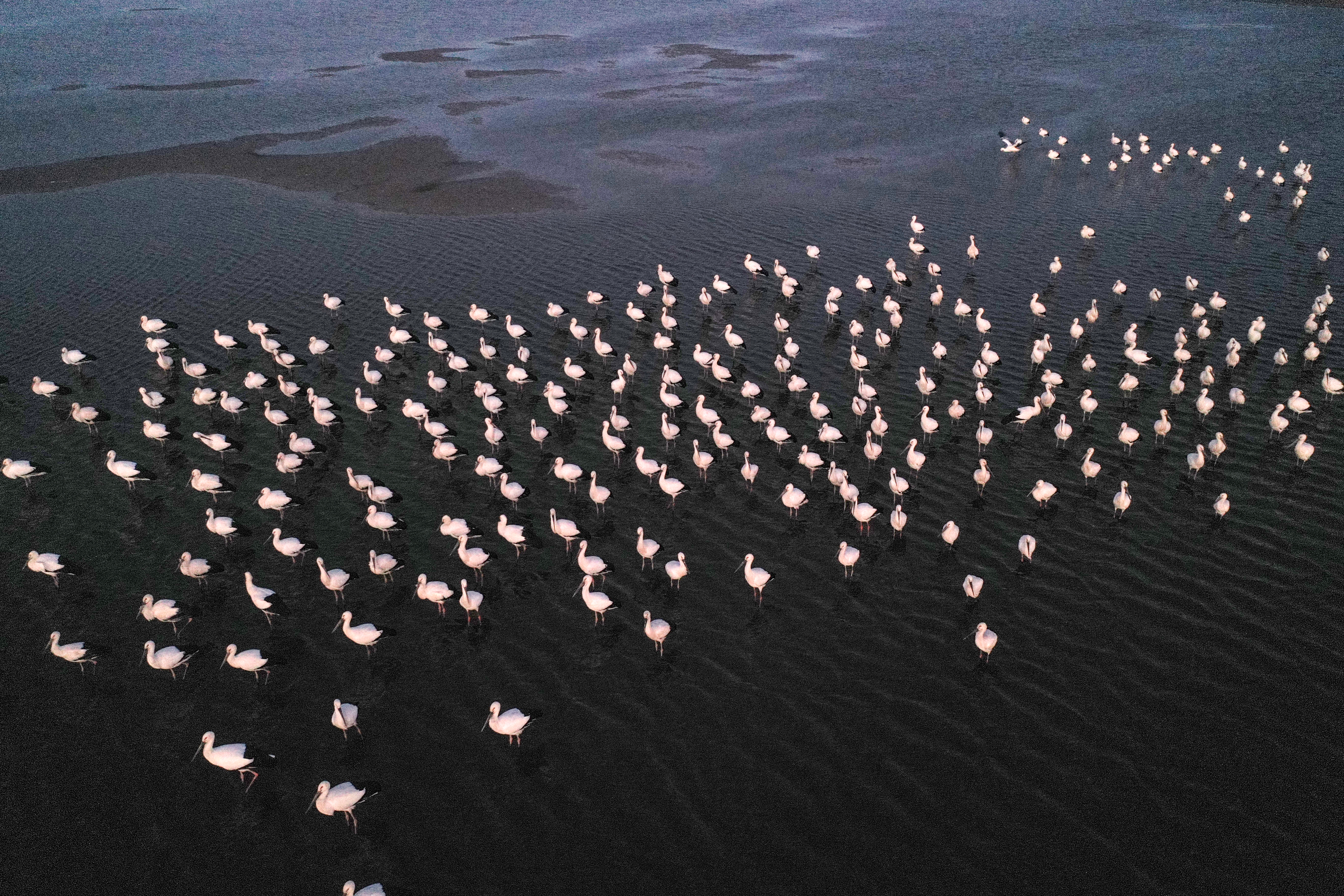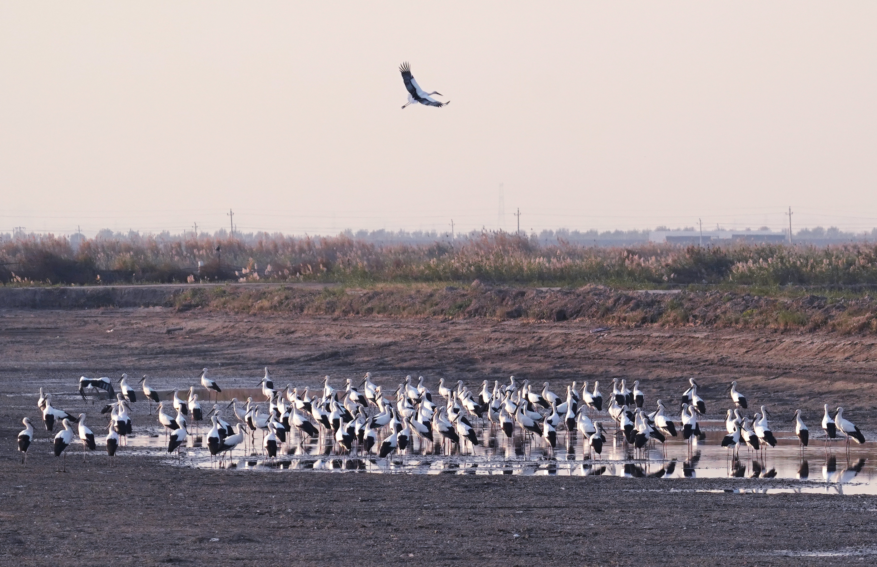 韩宝亮告诉澎湃新闻,游禽对水位的要求大概是20厘米,而作为涉禽的东方白鹳要求水位在5至10厘米,这也对承接东方白鹳的湿地也提出了水位要求。