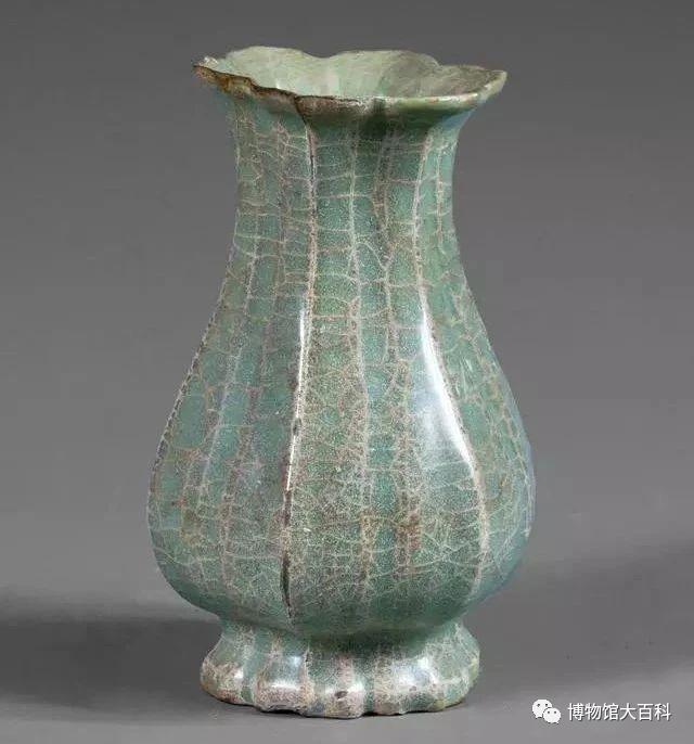 ▼南宋 龙泉窑黑胎青瓷菜形瓶浙江省博物馆藏