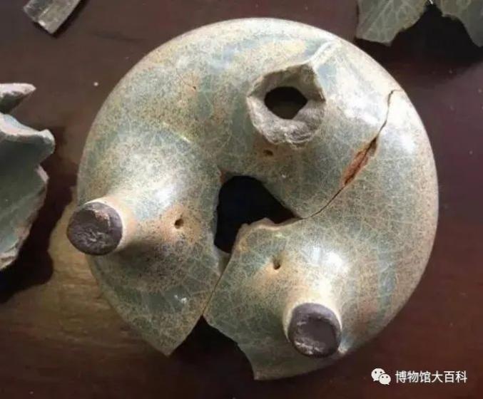 ▼大窑烧制黑胎类鸟食缸的瓷质支钉