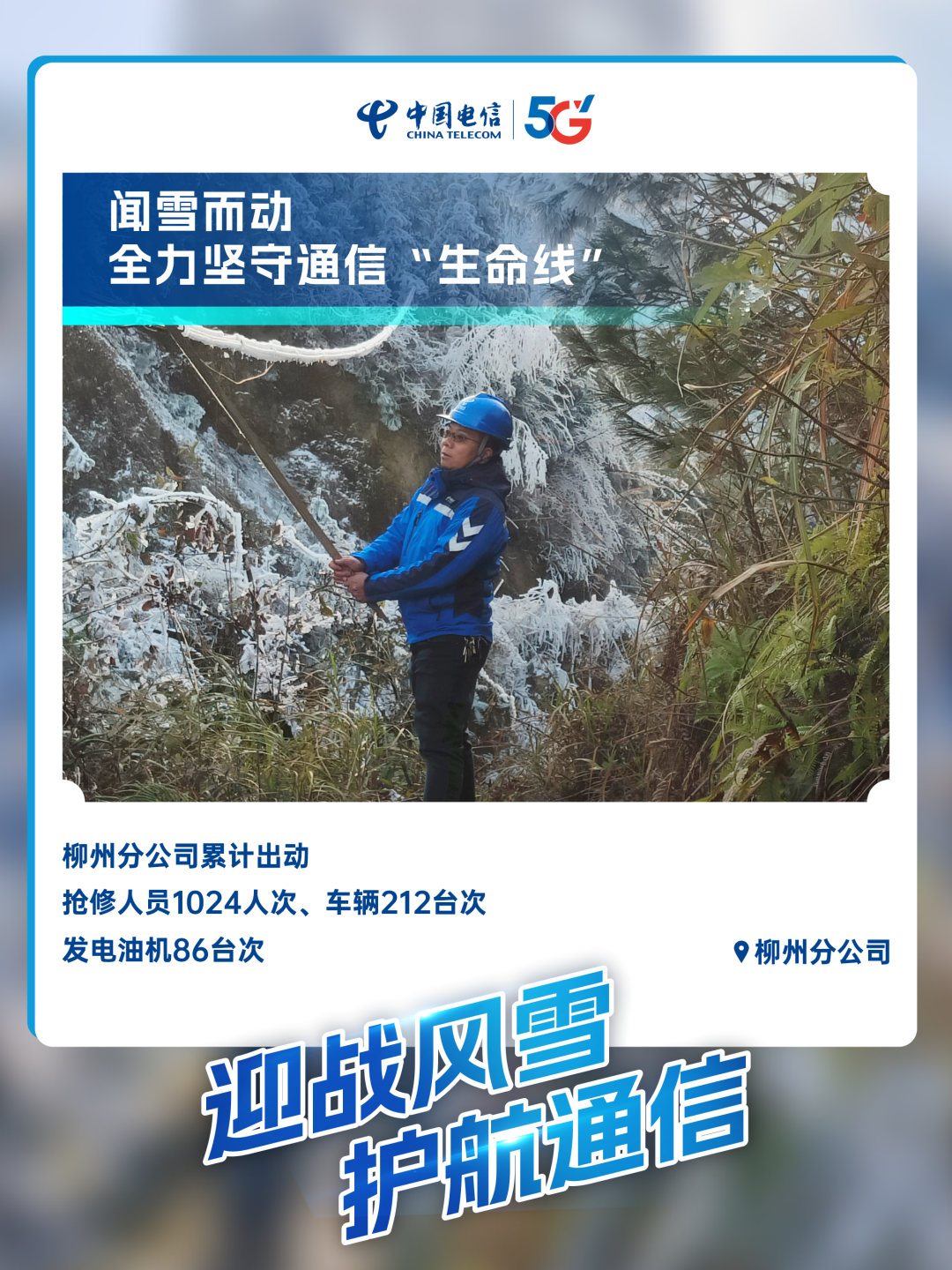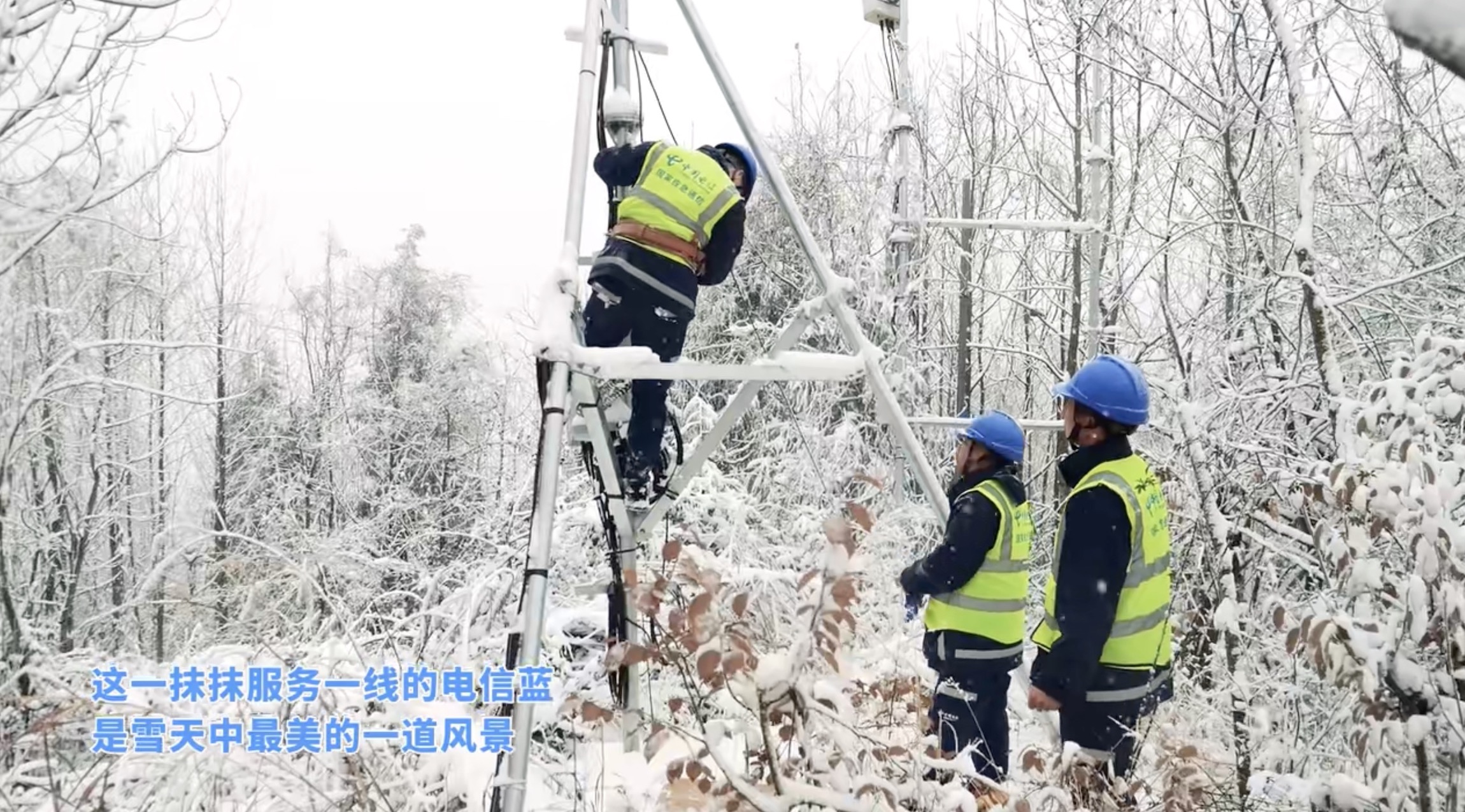 在这皑皑白雪的世界里有一抹熟悉的电信蓝