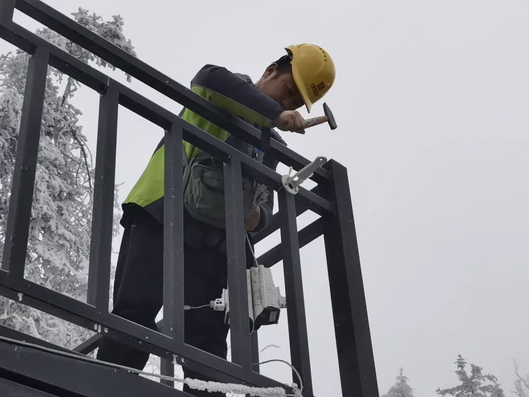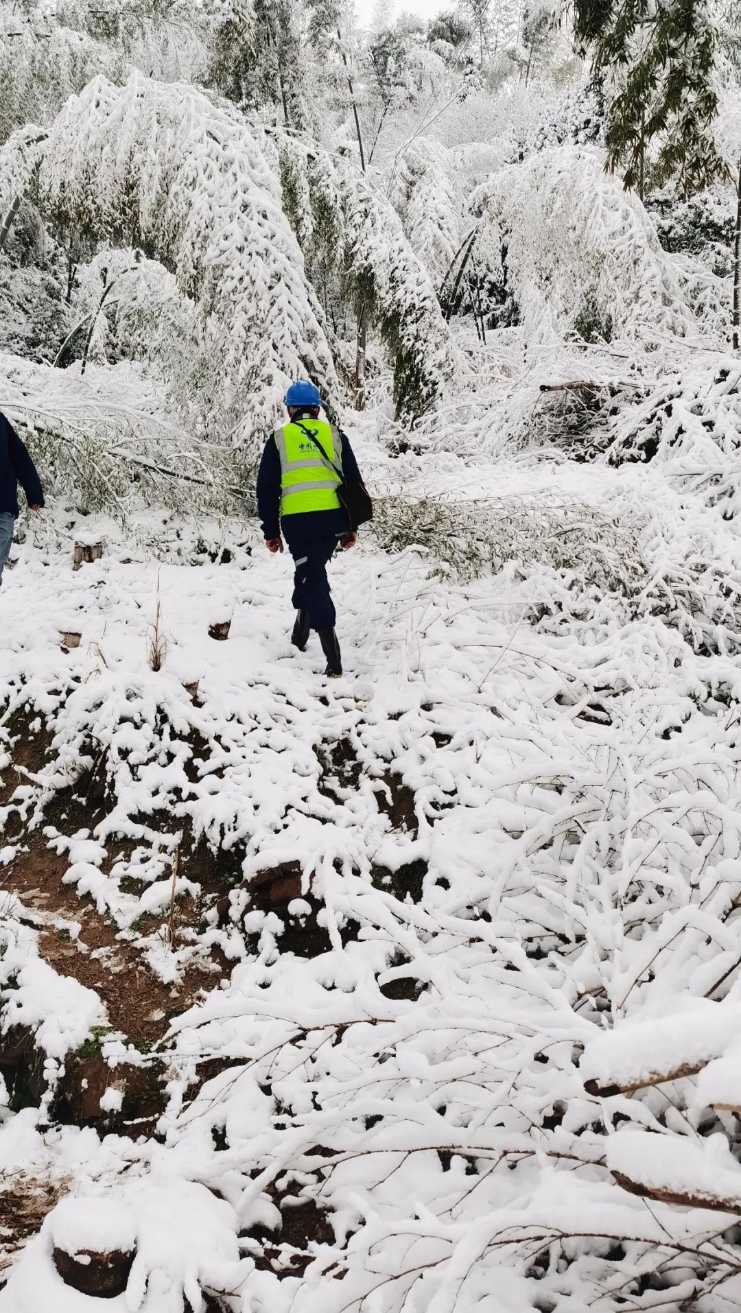 初雪的到来也为武夷山带来独特雪景,吸引大批游客纷至沓来赏雪拍照,电信人来到武夷山景区巡检监控设备,保障景区安全。
