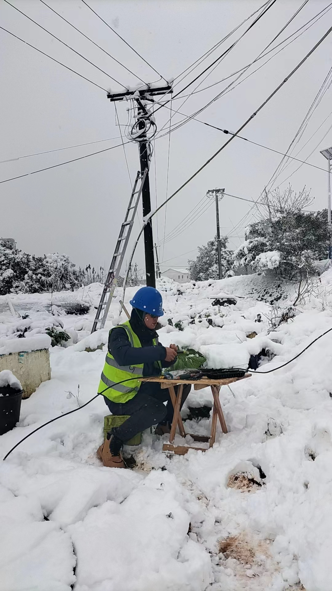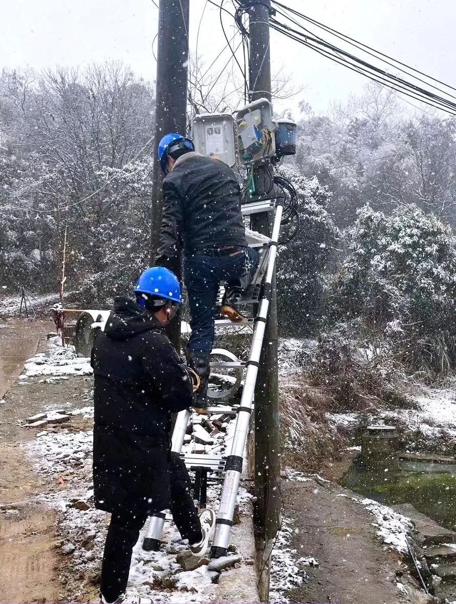 在冰天雪地中,电信装维人员开展线路巡检与宽带维修工作,纵使手脚冰凉,他们依然坚守在岗位上。