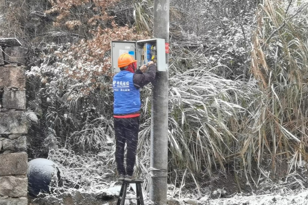 接到用户需求,电信人顶风冒雪奔赴现场,守护美好信息生活。