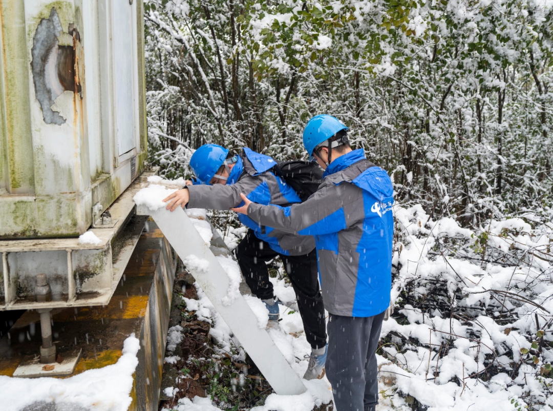 在金华,无线网络优化中心工作人员加强基站设备巡检,确保低温雨雪冰冻天气通信畅通。
