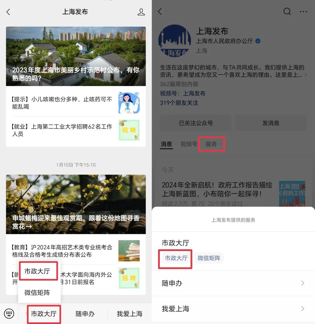 第一步:关注微信【上海发布】,选择【市政大厅】
