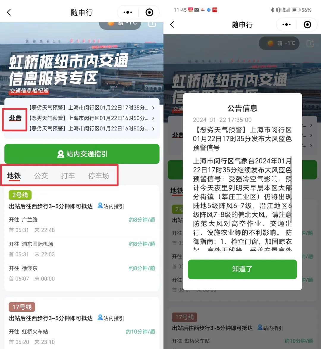 为了方便旅客到站出行,上海发布上线了虹桥市内交通服务,在这里你可以找到便捷的出行服务信息。具体操作步骤详见↓