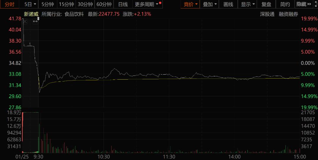在今天股票重新恢复交易之前的最后一个交易日,即1月10日,新诺威的收盘价为34.82元,比20.91元贵了66%以上。