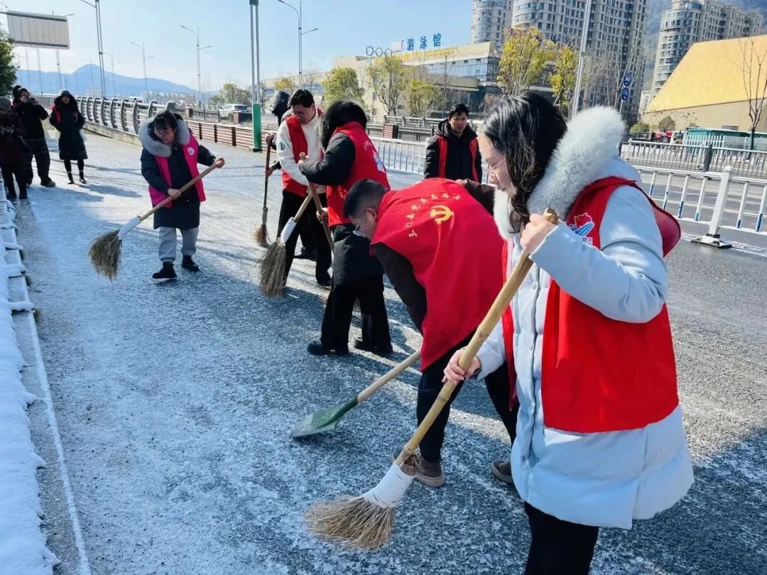 三门海游街道新兴社区和梧桐社区巾帼志愿者自发赶往马路和琴江大桥,开展铲冰扫雪志愿服务活动,清通群众出行“最后一公里”,用暖心行动促畅通、保安全。
