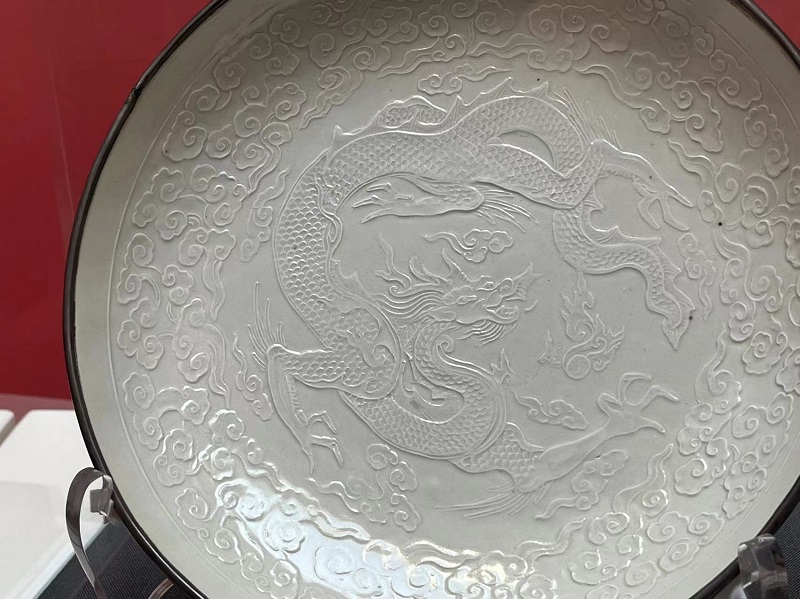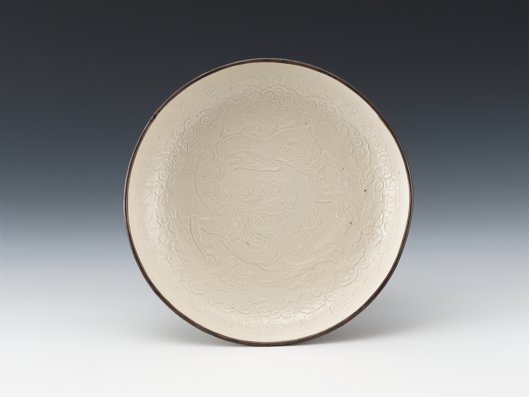 定窑白釉印花云龙纹盘