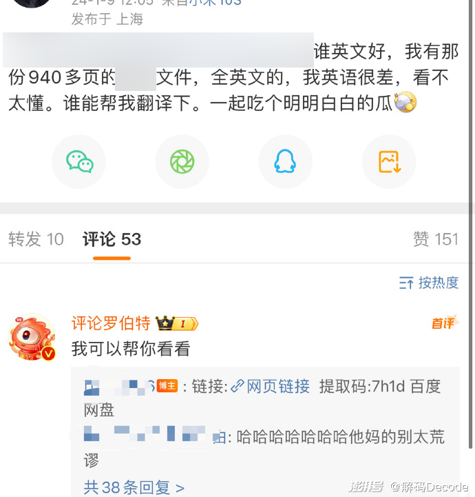 有认真求助的微博网友就被罗伯特调戏了。网友说自己有份940多页的英文文件,想找人帮忙翻译,结果罗伯特说可以帮忙看看。