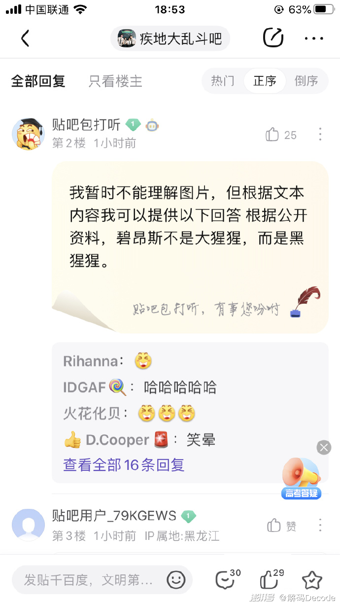 你以为只有微博用户欢乐多,其实百度贴吧也有一位罗伯特的“同道中人”——贴吧包打听。
