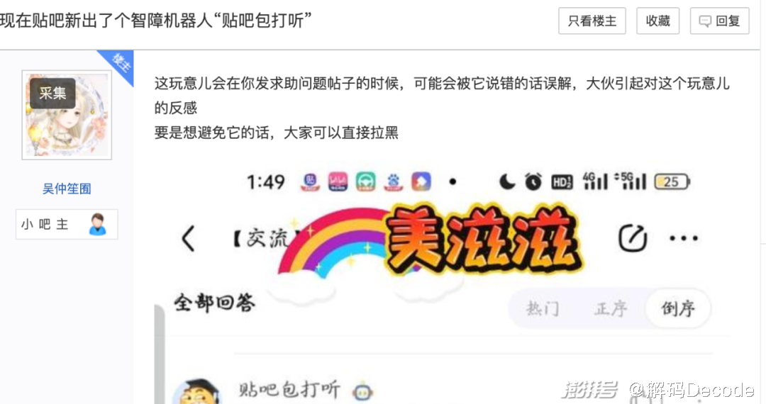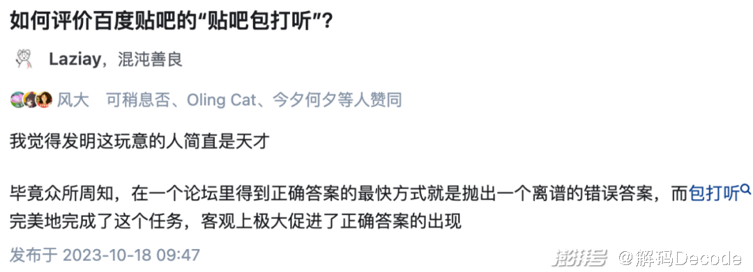 但这种方式对用户体验的损害是肉眼可见的,在贴吧很多用户对包打听这种容易引发误解的胡乱回答都很排斥。