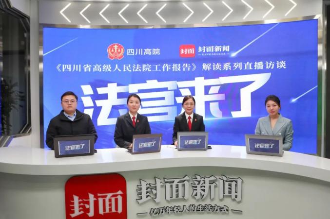 1月25日,“法官来了”推出的《四川省高级人民法院工作报告》系列解读全媒体直播访谈节目聚焦“枫桥式人民法庭”建设。直播间邀请到四川省高级人民法院民一庭庭长周静、崇州市人民法院街子环保旅游法庭庭长杨婷、崇州市文井江镇综合执法协调办副主任王卓栋三位嘉宾与大家互动交流,还连线多地法庭,近距离了解人民法庭在“枫桥式人民法庭”建设工作当中的生动实践。