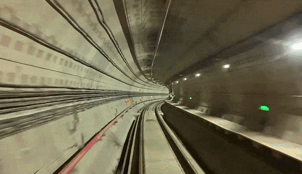 轨道交通15号线是国内一次性开通公里数最长,且开通运营即具备最高等级(UTO)全自动无人驾驶的轨道交通线路。其信号系统采用基于无线通信并满足自动化等级GOA4的全自动运行系统,能有效缩短行车间隔及折返时间,提高平均旅行速度,提供更高的安全性和可靠性,进一步提升运营服务质量与乘坐体验。15号线的无人驾驶室与车厢贯通,这意味着乘客可以在15号线列车车头驾驶舱位置,打卡隧道内部景象↓