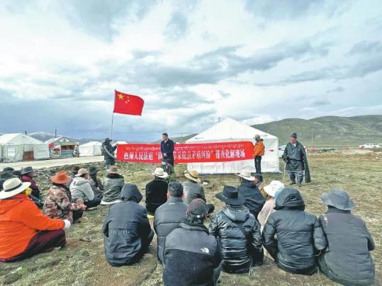 在乡镇政府的院坝内普法,去矛盾现场调处纠纷,到牧民家门口开庭……自2022年5月起,石渠县法院的法官们通过开展“太阳部落·云端法治”五步法,努力为人民群众提供多途径、高效率、低成本的纠纷解决方案,让法治理念一步步走进人民群众的心坎里。