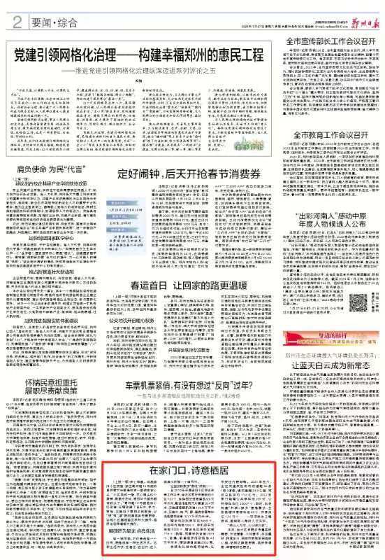1月5日,在金水区未来路街道金水锦江社区,金水花园西区居民王玉理握着社区书记的手激动地说:“感谢街道办事处领导和社区工作人员的积极协调、辛勤帮助,我们单元的电梯加装今天正式动工了,很快我们就可以享受到‘一键直达’的便利了!”“小电梯大民生”,承载着人民群众对美好生活的向往。民心相通。说起老旧小区改造,家住黄河路10号院的居民黄大爷更是别有一番滋味在心头:“小区焕然一新,我心里头这个美啊,简直没法说,感觉日子越来越有盼头了。”黄河路10号院老旧小区改造,还增改建了自来水、热力、弱电,实施地下管网系统更新,以“楼”和“道”推进基础类完善更新,实现小区基础居住条件大提升,居民生活幸福感大提升。
