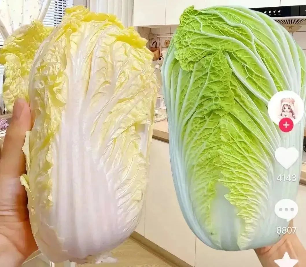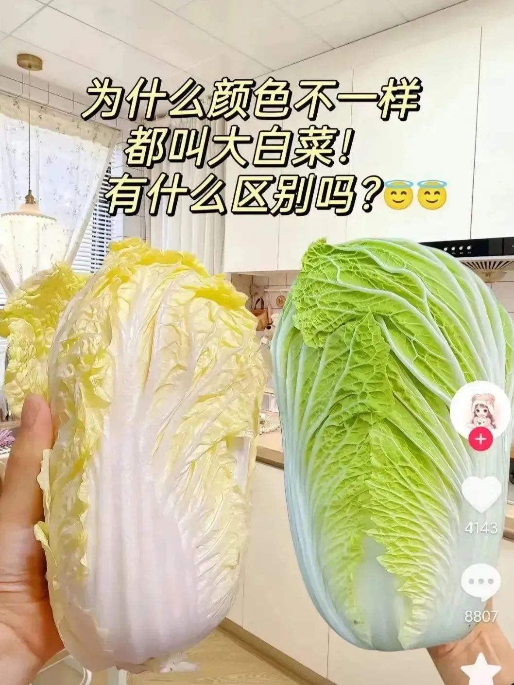 昵称为“晓晓爱生活”的用户,将一张有着两颗颜色不一的大白菜照片,发在了社交平台上,询问网友两者的区别,竟引发了8千多条讨论。