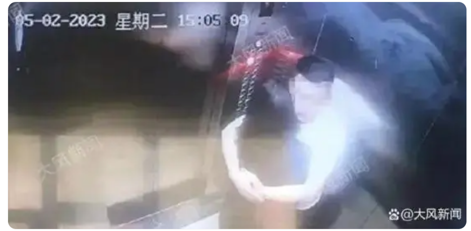 △郑女士的儿子和女方回婚房时的监控视频截图(图片来源:大风新闻)