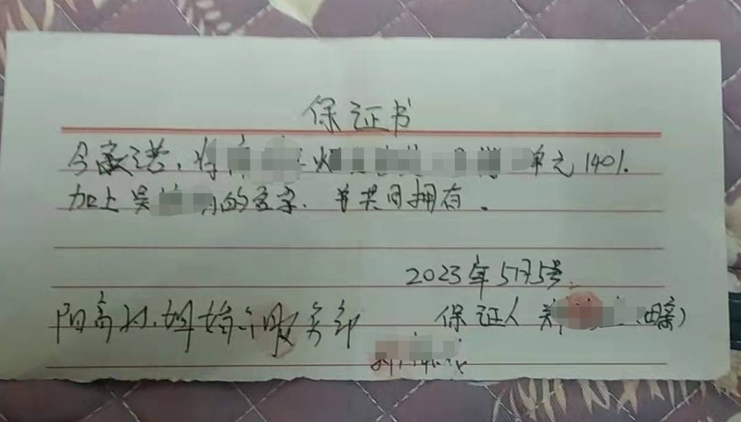 △小慧报警后郑女士写下的保证书(受访者供图)