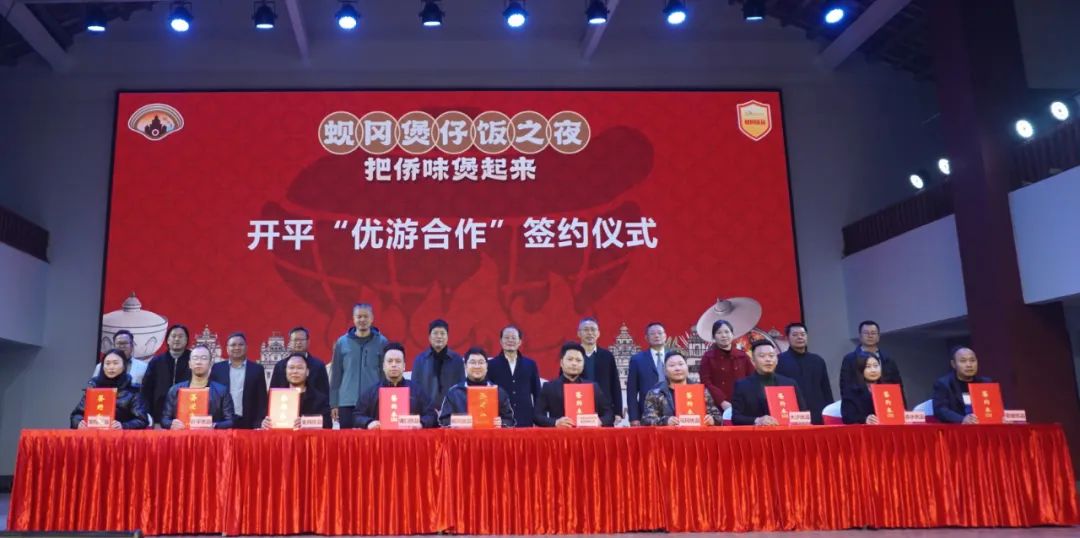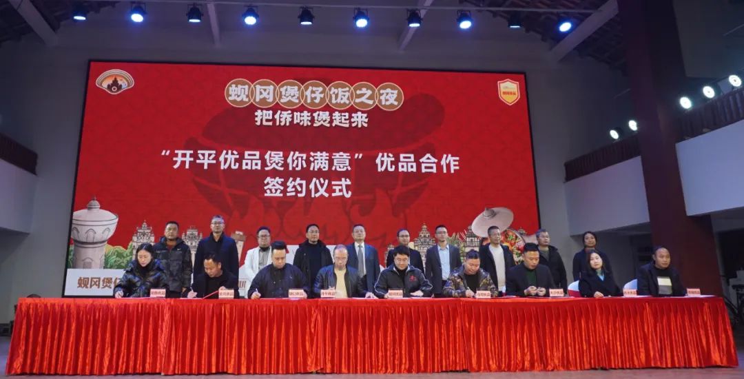 现场举行了“蚬冈煲仔饭剧场·侨文化侨心馆”揭幕仪式以及开平“优游合作”签约仪式、“开平优品煲你满意”优品合作签约仪式,开平“1+8”县镇两级行政区品牌矩阵更加紧密,一起“煲”好这煲有文化的饭,助推蚬冈煲仔饭“煲打天下”。