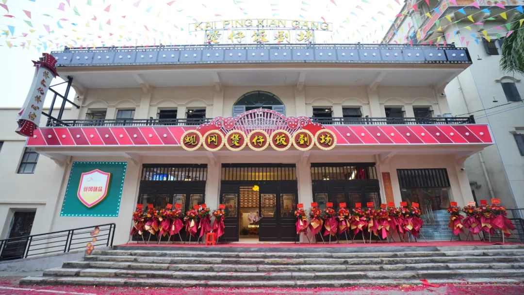 “蚬冈煲仔饭剧场·侨文化侨心馆”是蚬冈镇实施广东省“百县千镇万村高质量发展工程”的亮点之一,由蚬冈镇原来荒置的蚬冈影剧院升级改造而成。从荒废、漏水的老旧建筑,到全面加固、整体设计、建设、布展、营运商合作,升级改造成为“百千万工程”的亮点项目,仅用了3个月左右时间,创造了“蚬冈速度”。剧场里配备了50多平方米的LED大屏幕,整个剧场可以同时容纳300多人就餐及观看节目表演。剧场内还展出了县级行政区品牌“开平优品”及镇级行政区品牌“蚬冈优品”等优质特产,以及蚬冈特色产品、反映侨乡文化的旧物件等。在这里,市民、游客可以边吃煲仔饭,边看侨演艺,边品侨味道。此外,以该剧场为中心,蚬冈镇将剧场及周边打造成集侨老街、侨碉楼、侨美食、侨演艺、侨心馆、侨文化、侨生活于一体的蚬冈侨墟老街时光七彩馆。