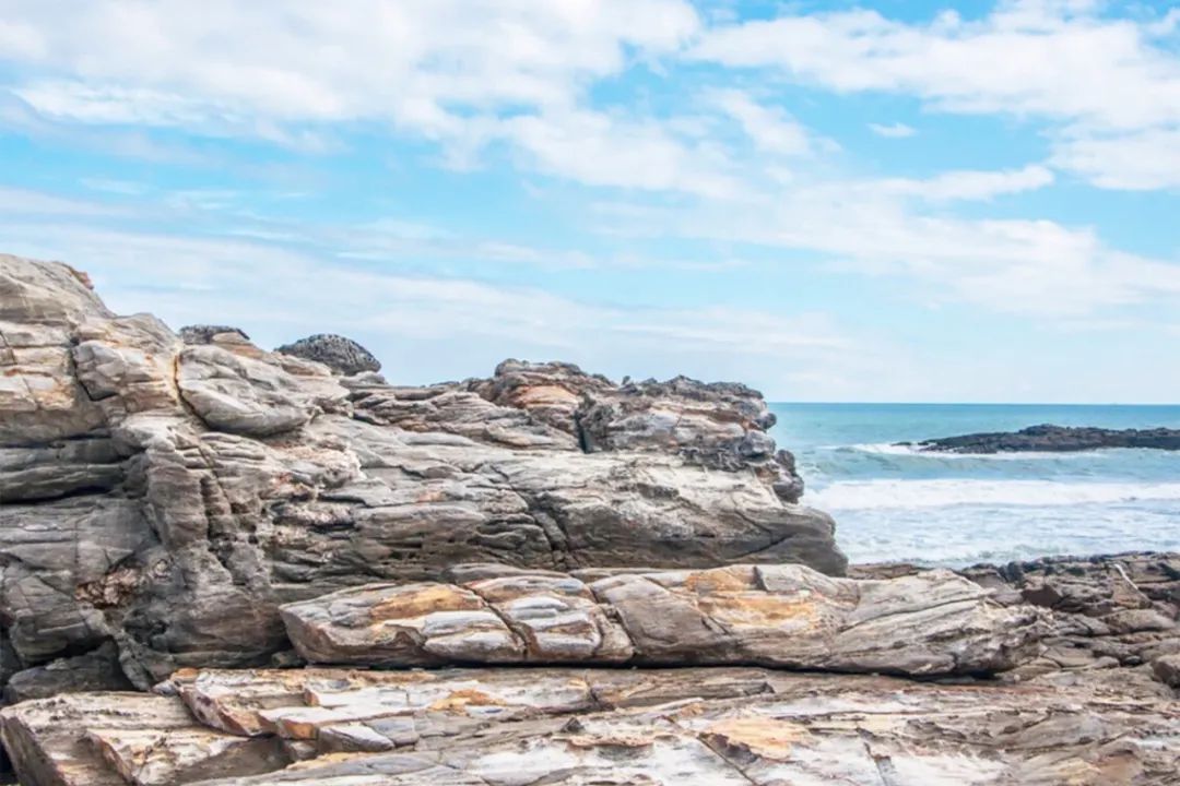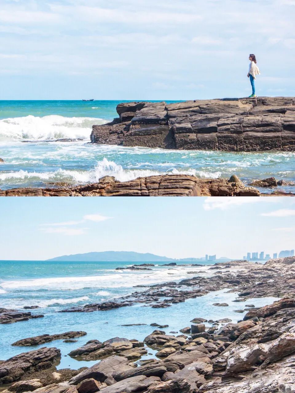 而海滩上有很多形态各异的巨大礁石,海水拍打着阳光下的礁石,更是超级出片。躲在巨大礁石下,看海海风晒太阳,在大自然的鬼斧神工下,好像会忘掉所有烦恼。